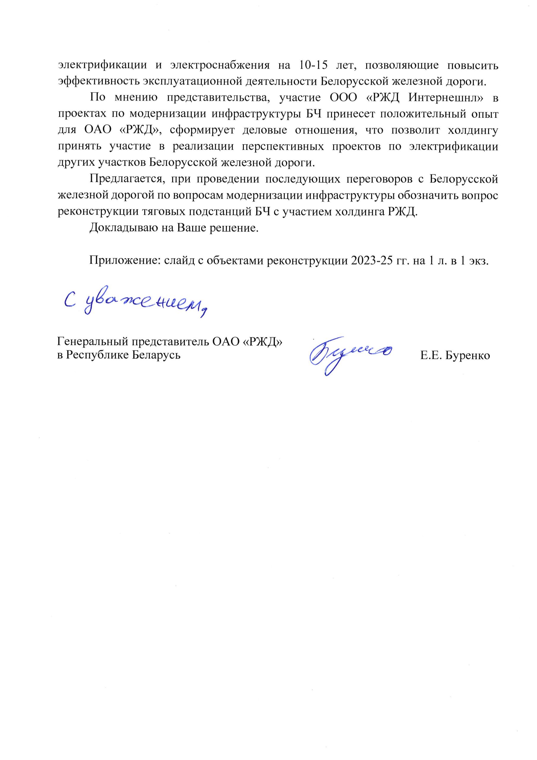Письмо «О модернизации тяговых подстанций БЖД» от 27.10.2022 года: